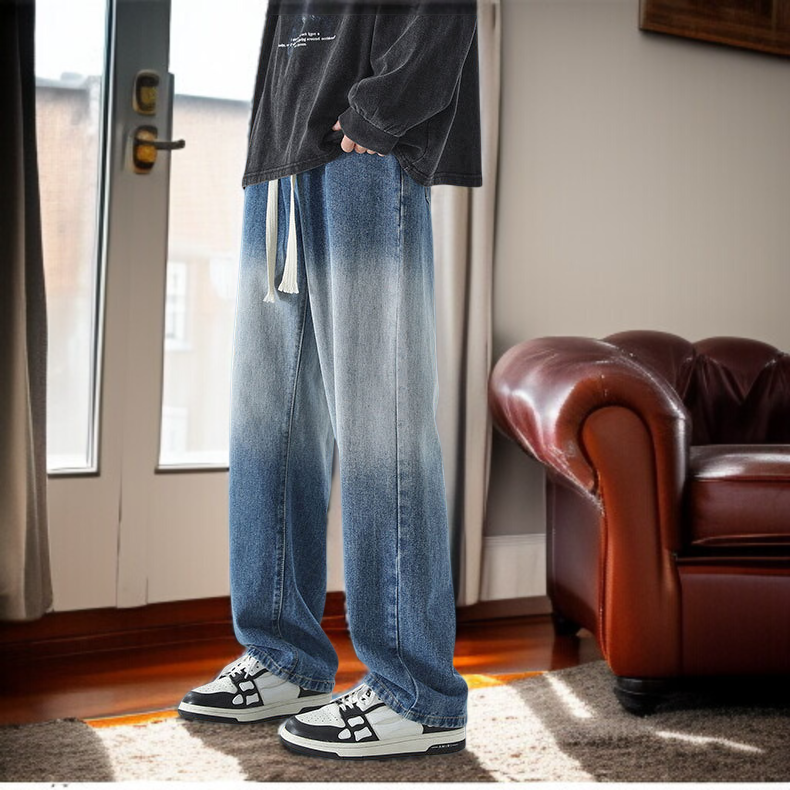 ● 남성분들을 위한 와이드 일자 청바지로, 트렌디한 그러데이션 디자인이 돋보여 일상 속 스타일을 한층 업그레이드해줍니다.